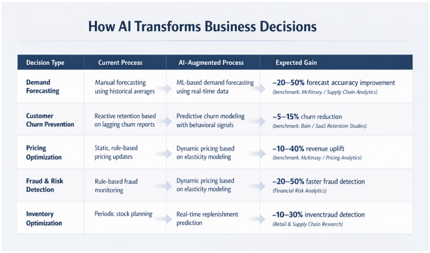 In these scenarios, how AI improves business decisions becomes measurable—not theoretical.